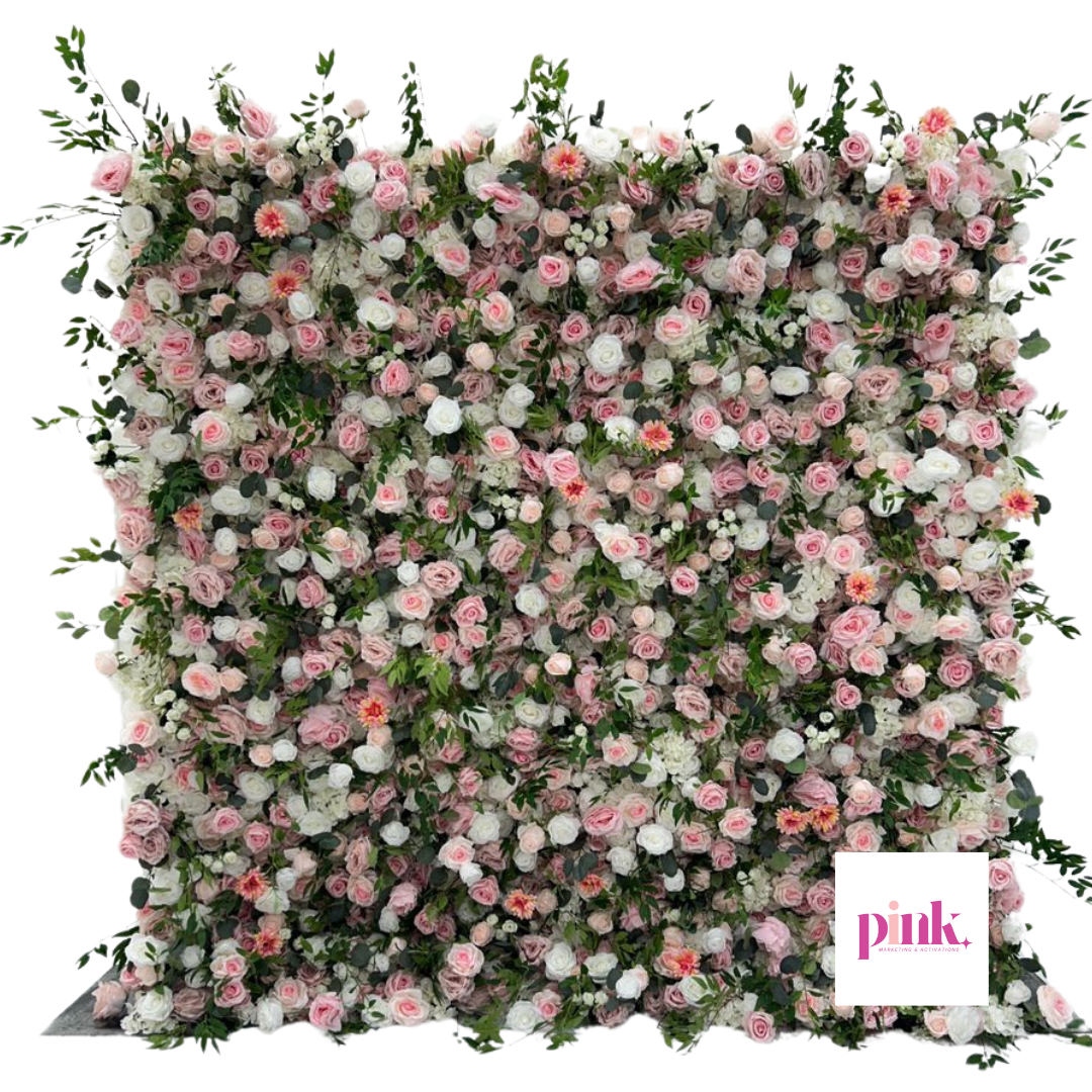 8’x8′ Pink, Ivory Greenery Luxury Faux Flower Wall